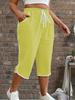 2026 Plus Size Women's Color Block Stretchy Cropped Pants - Comfortable & Sexy Sportswear Casual Pants