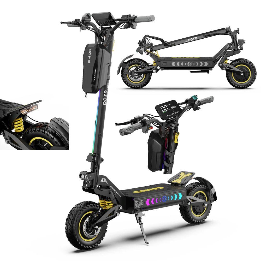 Uitgerust met twee motoren die elk een piekvermogen van 1300 W leveren, biedt de scooter robuuste prestaties en snelle acceleratie, met een topsnelheid van 65 km/u. Het past zich gemakkelijk aan stedelijke wegen en off-road terrein aan en biedt een werkelijk hoogwaardige rijervaring.