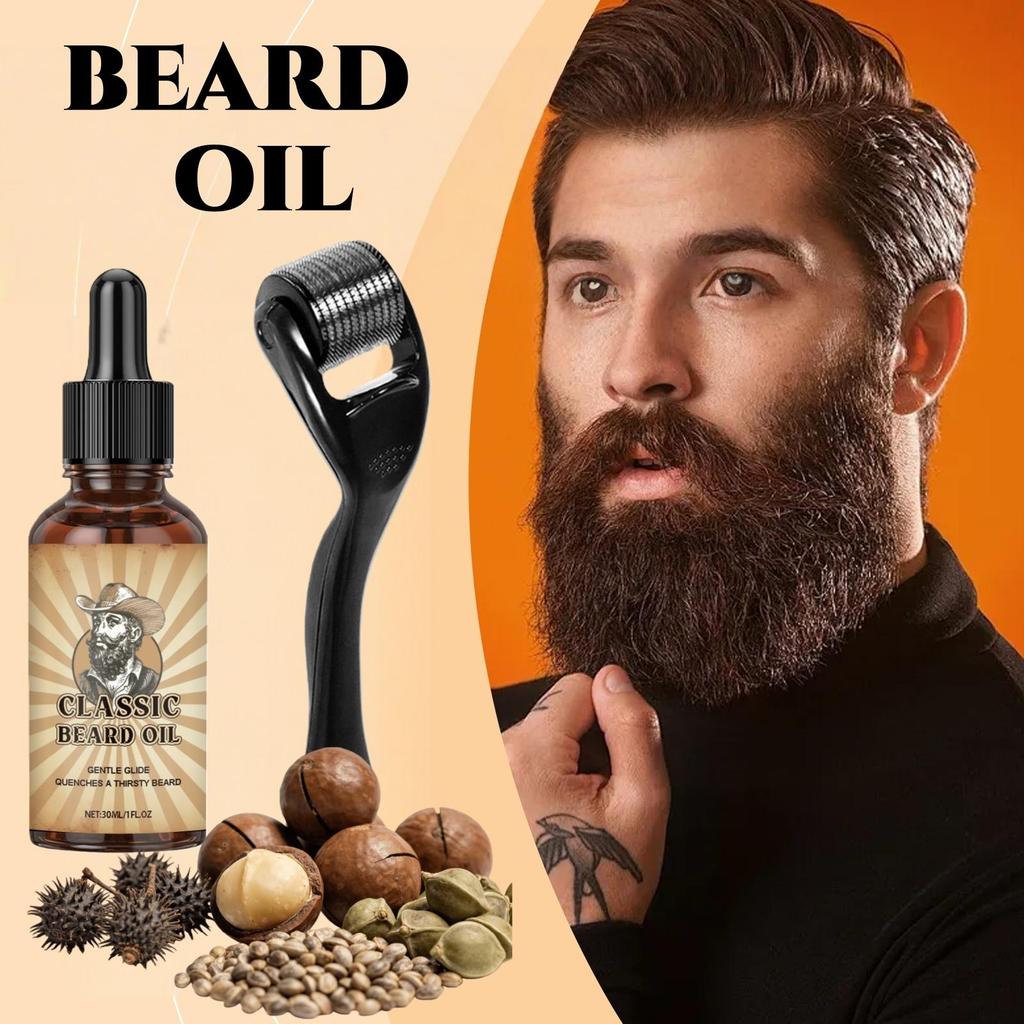 Men's Beard Care Kit – Nourishing beard serum + roller. Provides moisturizing shine and smoothness. Gentle and alcohol-free.