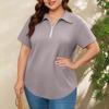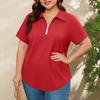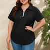Women's Fashionable Casual Loose Fit Zipper Short-Sleeve Top