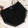 Women's Plaid Lace Edge Seamless Waffle Underwear with Graphene Crotch and Bowknot