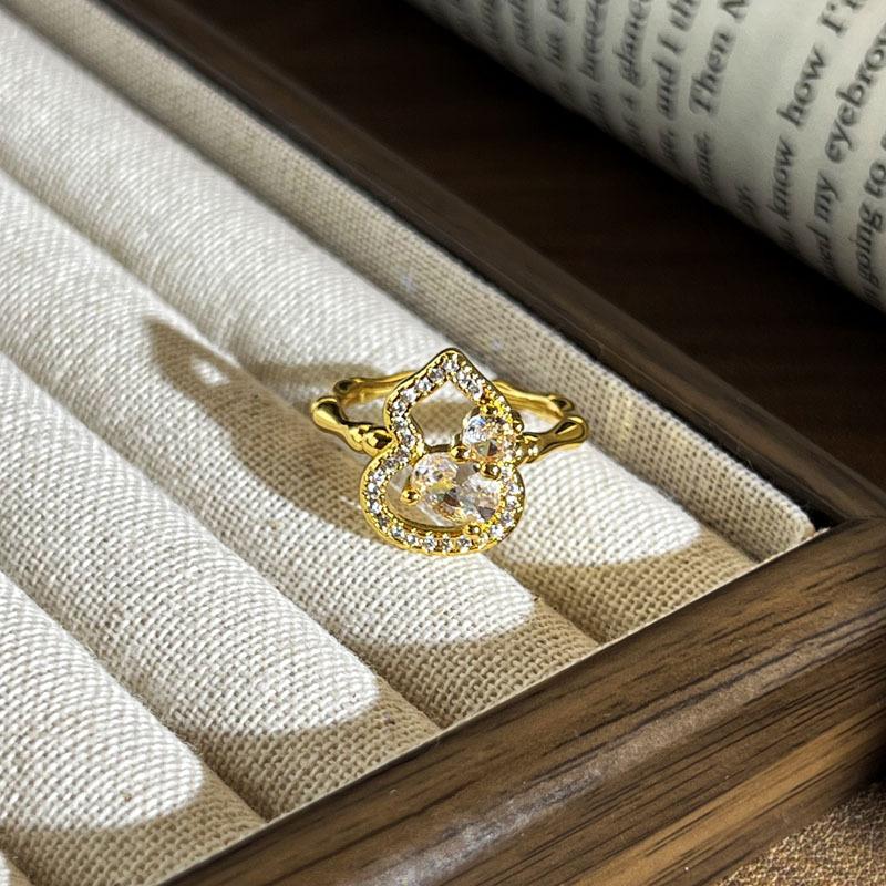 2026 Ring Female Niche Design Sense Geometric Micro-inlaid Zircon Cold Wind Versatile Retro Adjustable Texture Ring