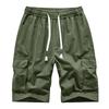 2026 Men Cotton Cargo Shorts Men Elastic Waist Solid Loose Casual Shorts Men Jogger Multi Pocket Knee Length Short Pants 30-42