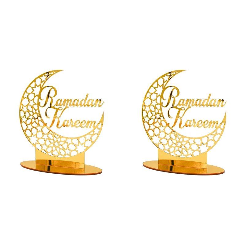2Pcs Acrylic Eid Mubarak Table Decoration, Ramadan Moon Night Light, Ramadan Mubarak Decoration, Moon Star Ramadan