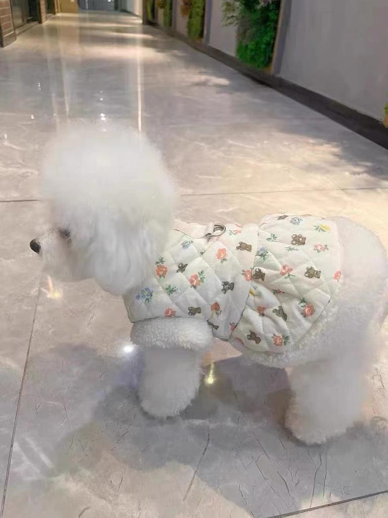 Warm Winter Pet Dog Clothes Teddy Flower Cotton Puppy Dress Thickened and Warm Puppy Feet Coat Pet Fashion Cardigan XS-XL