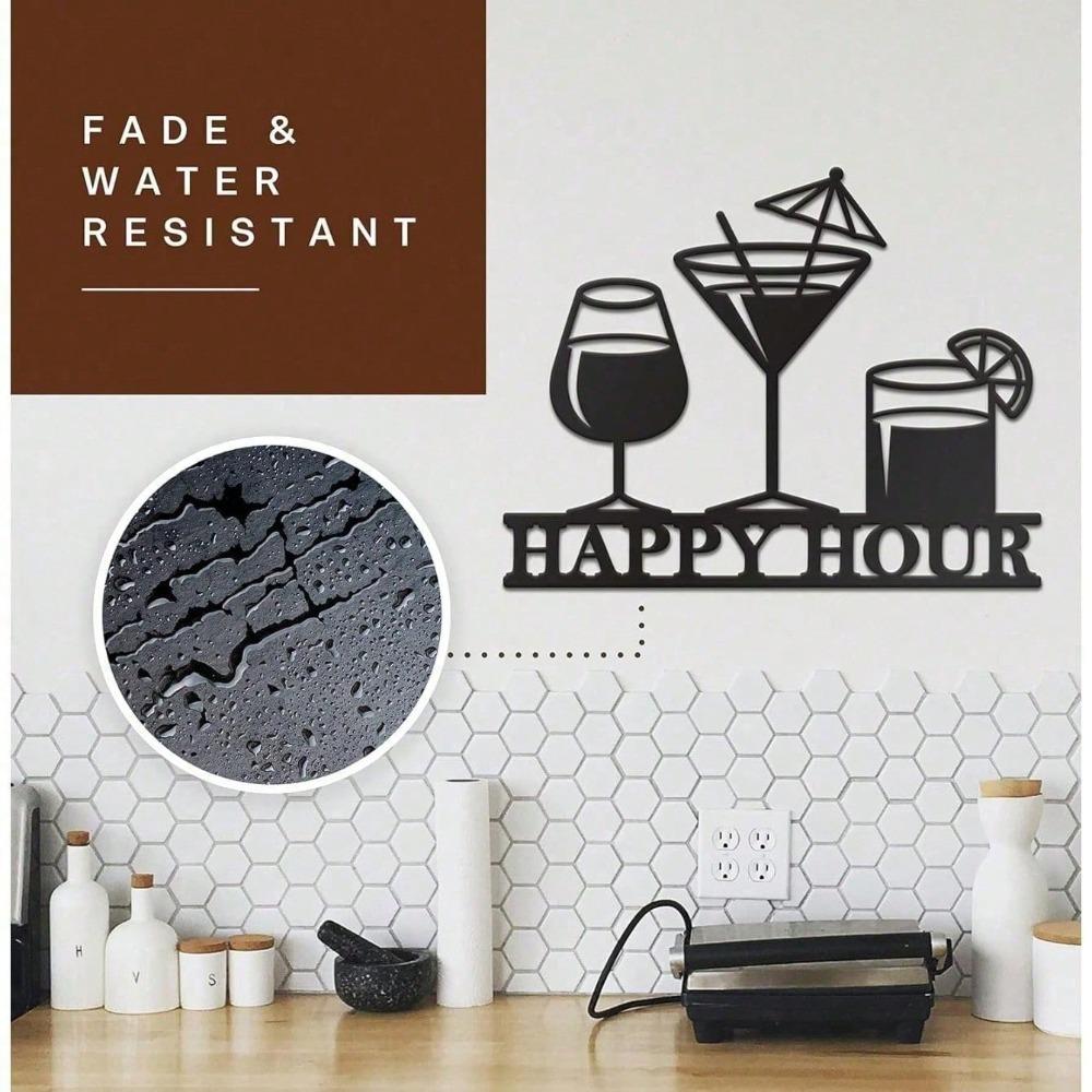 Black Metal Happy Hour Sign Vintage Pub Wall Decor for Home Bar Man Cave