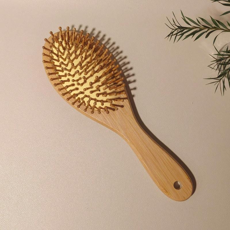 1pc Oval Bamboo Air Cushion Comb, Natural Bamboo Brush, Suitable For Thick/Thin/Curly/Dry Hair, Unisex, Scalp Massage, Anti-Static Hair Brush