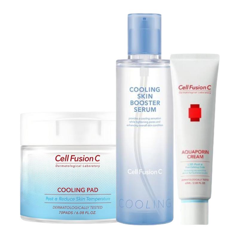 Cell Fusion C Post Alpha Cooling Skincare Set (Cooling Pad 70 Pads + Skin Booster Serum 150ml + Aquaporin Cream 60ml)