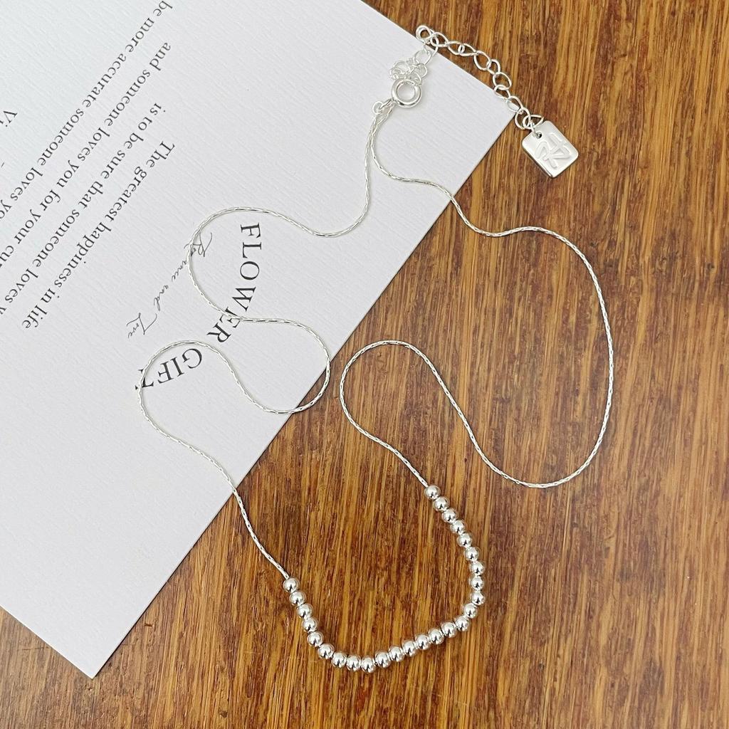 Korean ins style handmade beaded high-end sense simple round beads stacked collarbone chain S925 sterling silver necklace