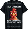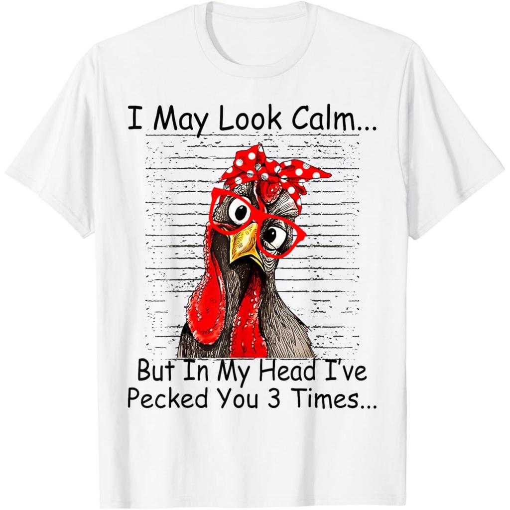 I May Look Calm But in My Head Ive Pecked You 3 Times T Shirts Men Women Pure Cotton Humor Chicken Tee Unisex Loose Clothing