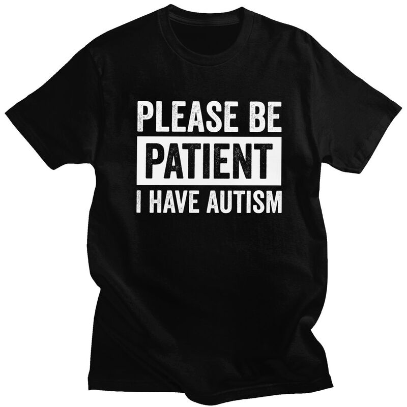 Custom Please Be Patient I Have Autism Letter Print T Shirt for Men 100 Cotton Tshirt Leisure Tees Short Sleeve Tshirts