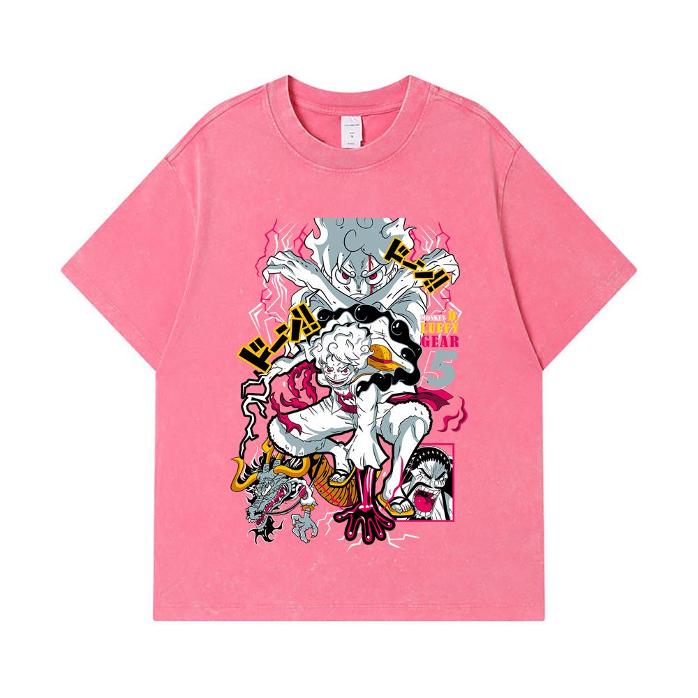275 GSM Washed T-shirts 100% Cotton One Piece V23 Luffy Gear Print Unisex Heavy Cotton T Shirt