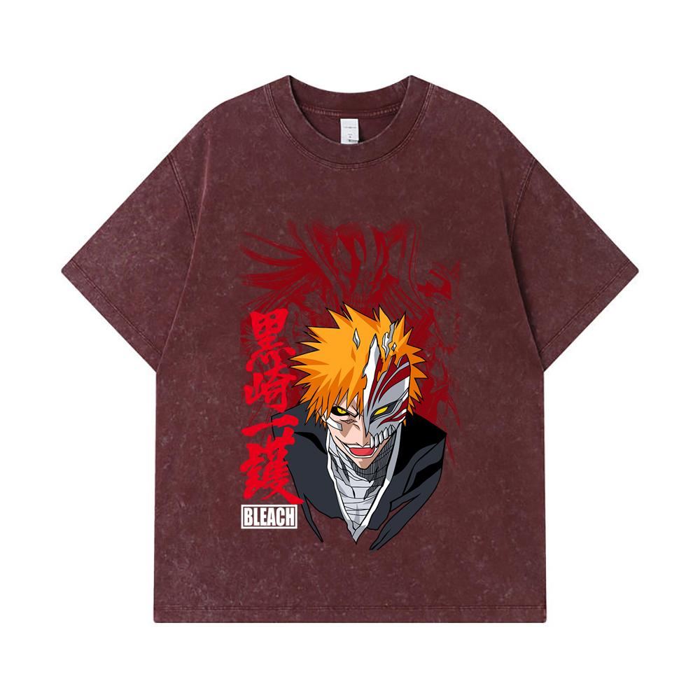 275 GSM Washed T-shirts 100% Cotton Bleach V1 Ichigo Print Unisex Heavy Cotton T Shirt