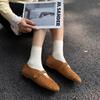 Johnature Retro Cow Suede Hollow-out Flat Shoes Breathable Soft Sole Versatile Women's Shoes