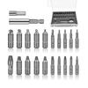 [Extra Extender]: The extension bit holder (6.35 mm) and the socket adapter (4 mm) of the screw removal set fit all electric drills of any brand; The magnetism inside the support and the adapter prevents the tips from falling , fix the drill or extractor and enlong the tools to reach what you were trying to drill.