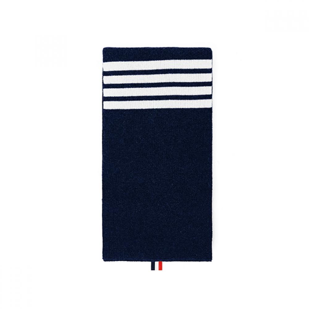 This scarf is made from high-quality cashmere from the Thom Browne brand. The design features a 4-bar stripe pattern and tab detail, allowing you to feel the signature Thom Browne style in a simple yet elegant manner. The long knit scarf is available in a calming navy color that pairs well with various winter outfits.