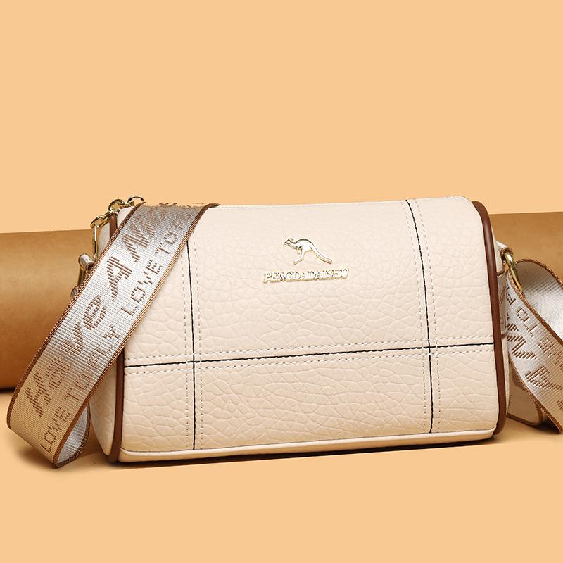 Fashion Stitching Leather Handbag Wide Shoulder Strap Crossbody Bag Shoulder Bag