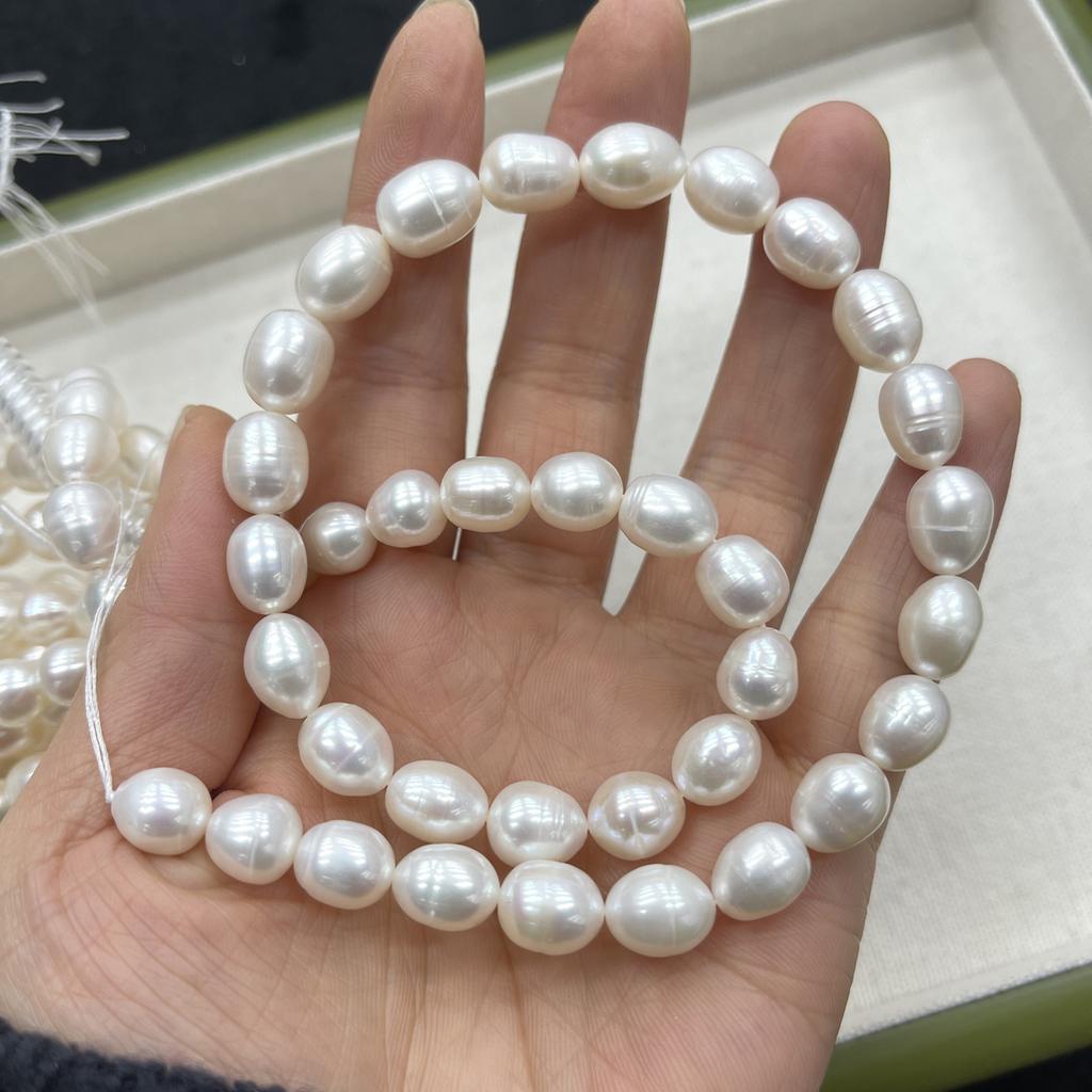 1String, White Natural Freshwater Pearls, Handmade Rice Pearl Beads for Jewelry Making DIY Crafts (Beads 9-10mm, Length 36cm)
