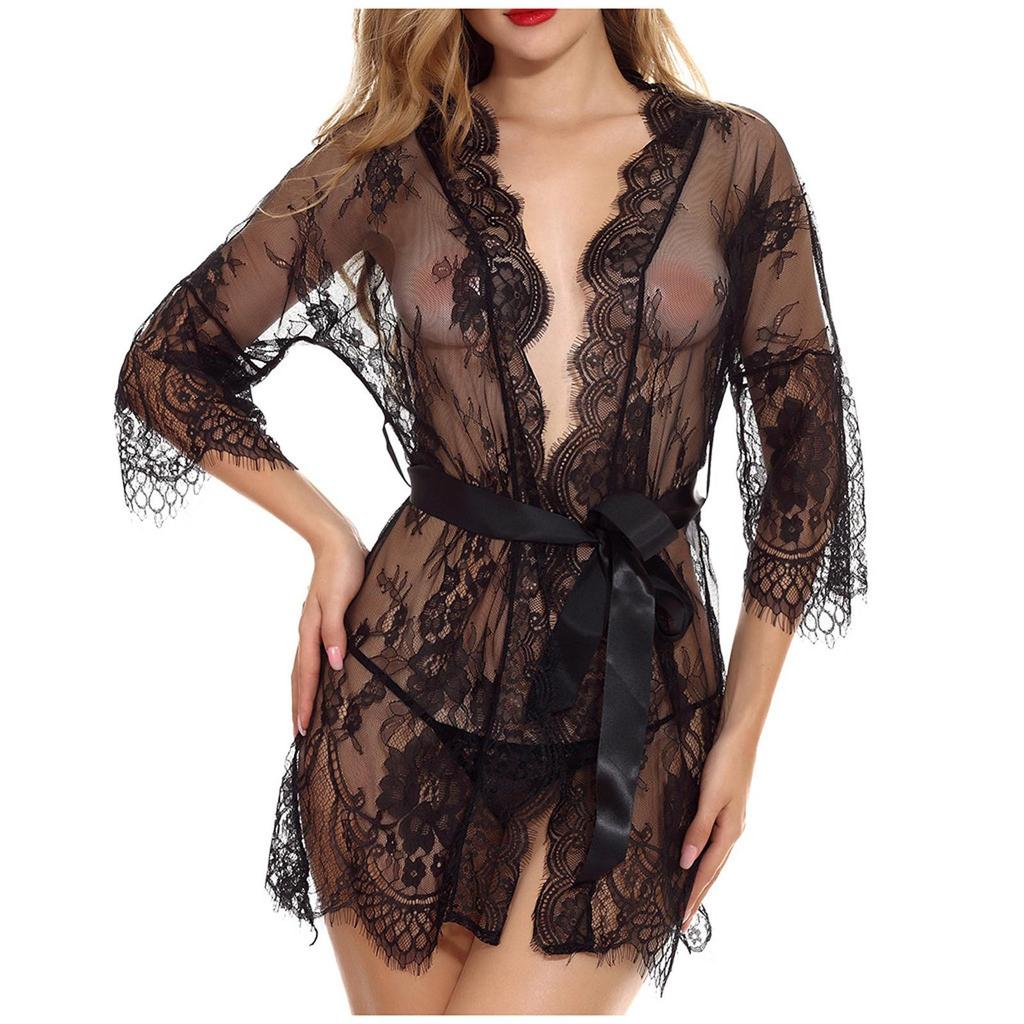 Mode Vrouwen Sexy Kamerjas Babydoll Kanten Lingerie Riem + G-string Badjas