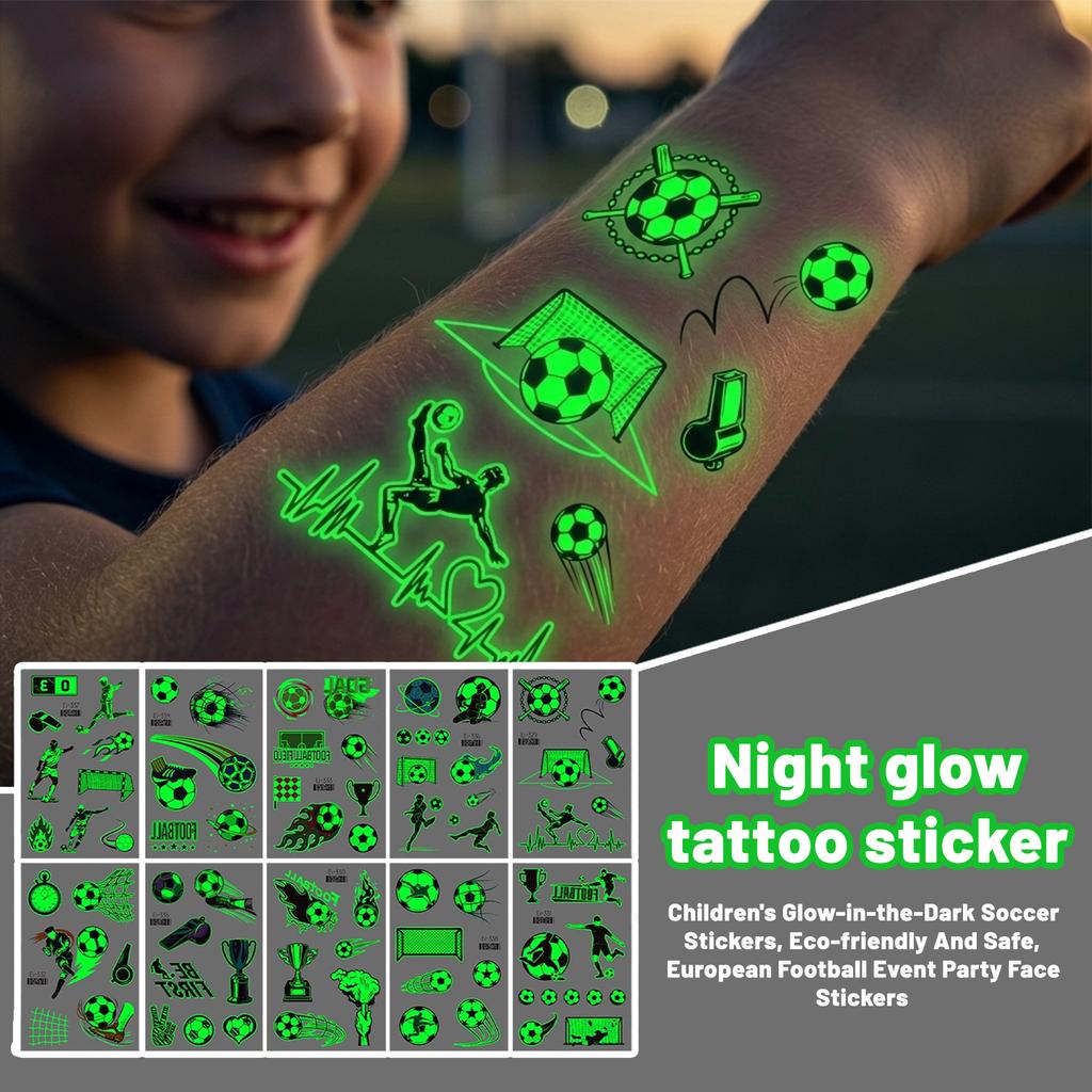Children's Glow-in-the-Dark Soccer Stickers, Eco-friendly And Safe, European Football Event Party Face Stickers