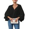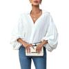 Versatile Half Placket Neckline: Designed with a half placket neckline adorned with matching shell or resin buttons, this shirt offers two distinct collar styles in one garment. When buttoned up, it forms a charming Peter Pan collar perfect for polished looks. Unbuttoned, it reveals a relaxed V-neckline that elongates the neck and slims the face and shoulders, providing an effortlessly sexy yet sophisticated vibe adaptable to different occasions.