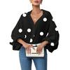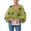 Classic Dot Pattern: Showcasing precision digital printing, the shirts dots are carefully sized to balance romance and subtlety. Larger dots create a bold, playful statement, while smaller dots add delicate refinement. This timeless pattern enhances the shirts vintage-inspired style, making it an ideal choice for those seeking both elegance and whimsy in their wardrobe.