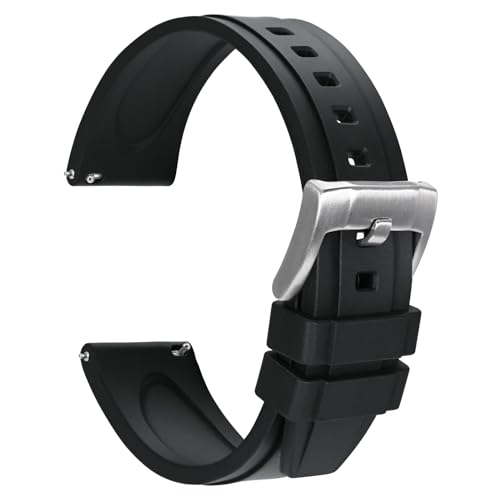 [WOCCI] Fluororubber Watch Band 20mm Silicone Watch Strap Luxury Watch Rubber Strap Quick Release Black/Silver Buckle