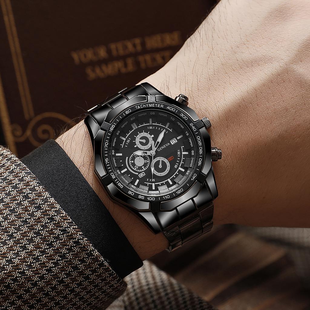 New large dial men's steel strap watch calendar quartz watch men's watch creative wristwatch