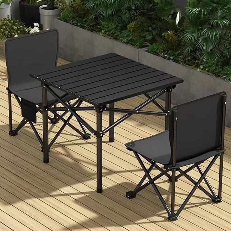 Draagbare Opvouwbare Camping Tafel & Stoelen Set met Roltafel en Visstoel