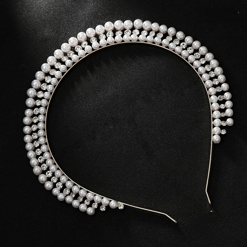 Rhinestones Princess Crown Headband Elegant European Hairband Pearl Headwear Bridal Accessories