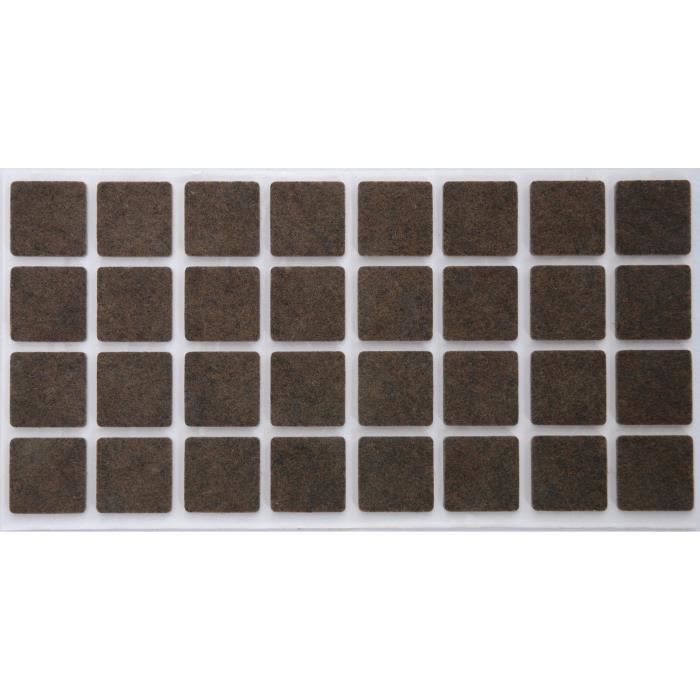 Lot de 32 x patins en feutre, 25x25 mm, carrée, marron, auto-adhésifs, qualité top (3,5 mm)