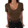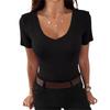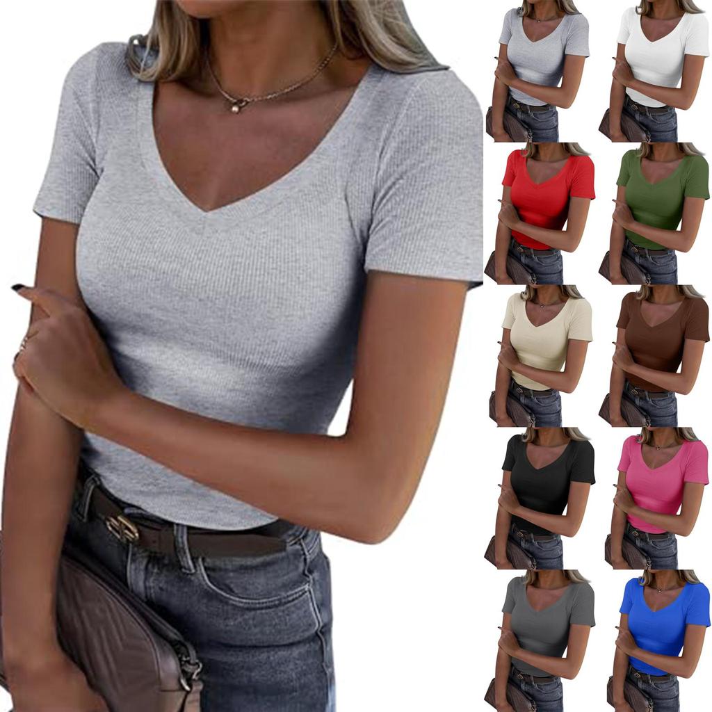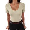 Dames Zomer Slim-Fit Sexy Casual V-hals Korte Mouw T-shirt Top