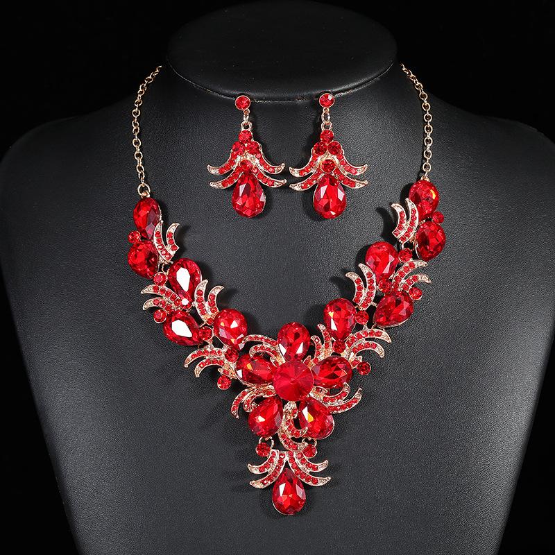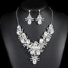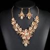 2026 European and American alloy collarbone chain necklace earrings set female court temperament European and American retro colored flower crystal