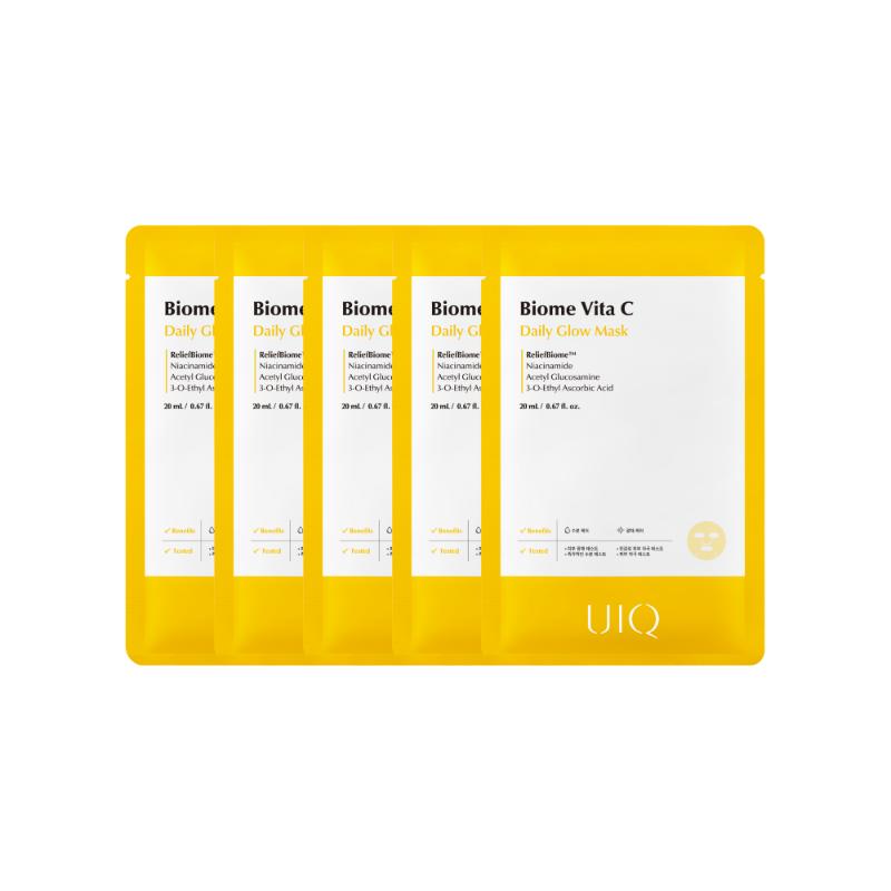 UIQ Biome Vita C Daily Glow Mask | Vitamin C Brightening & Microbiome Radiance Sheet Mask | 20ml x 5pcs (1 Box)