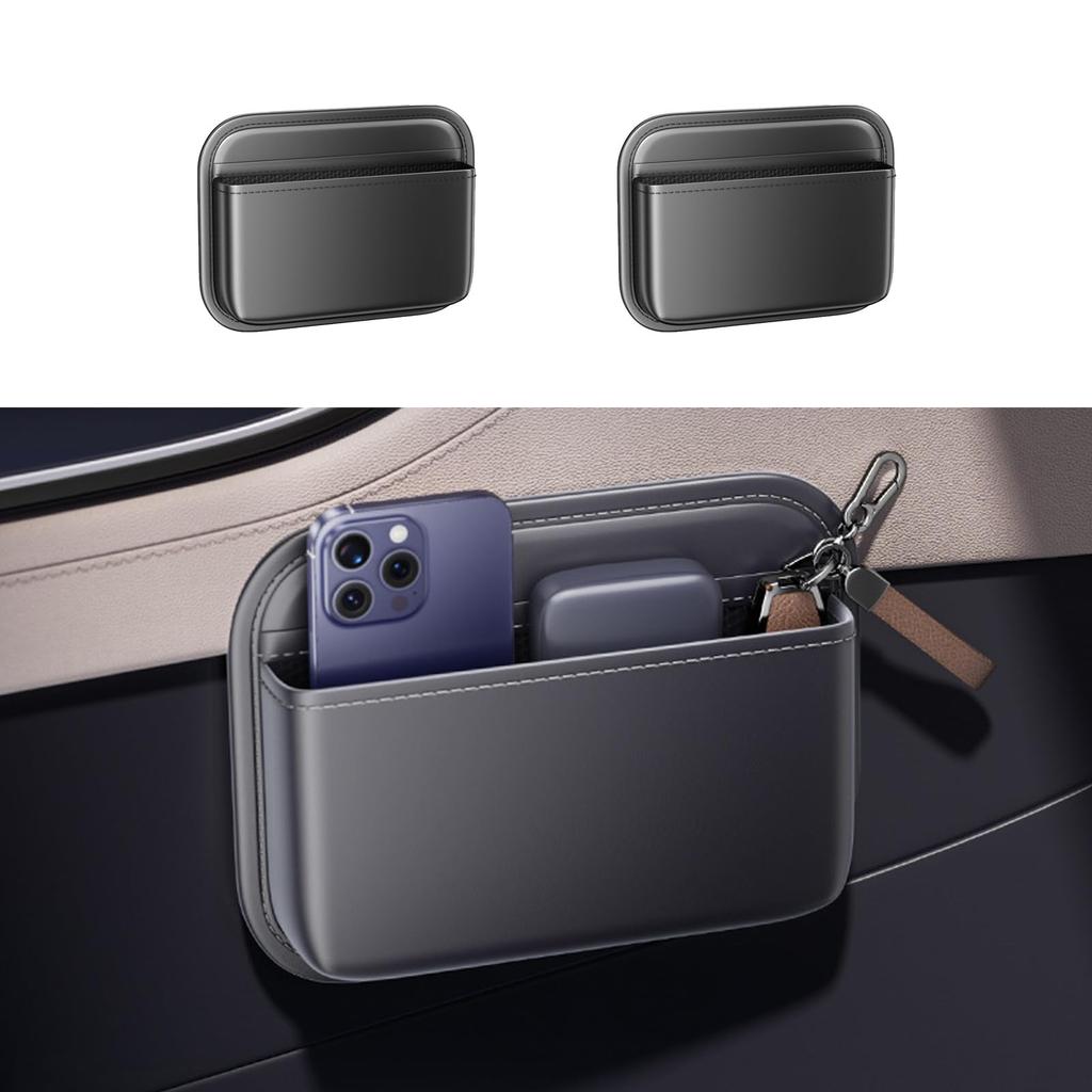 SOEDZUND Car Side Seat Slim PU Super Strong Adhesive Universal Car Organizer Pocket, Storage, Design, Leather, Tape, Smartphone/Card/Glasses Storage,