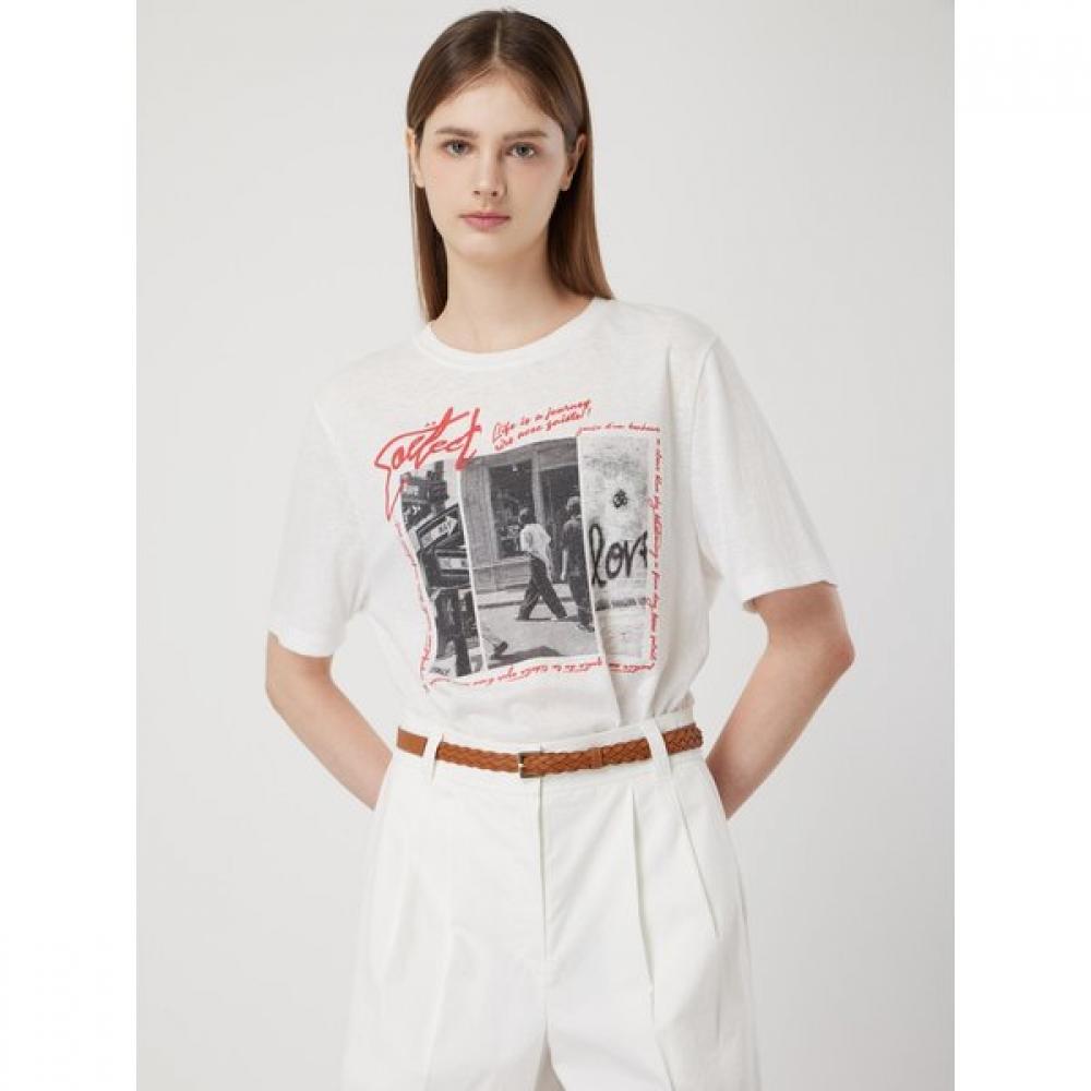 This T-shirt features a round neck with vintage prints that stand out, making it suitable for a casual look. Made from a cotton blend, it offers a soft wearing experience and is comfortable for all seasons. With a thin texture, it is lightweight and adds a luxurious touch with its subtly sheer styling.