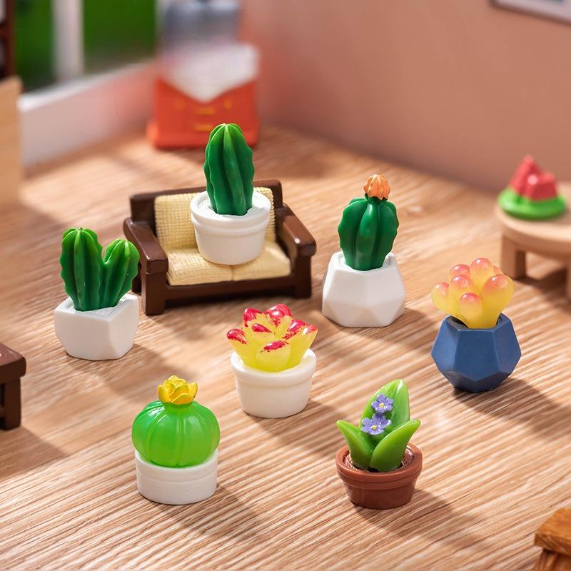 2Pcs Artificial Realistic Succulent Cactus Resin Potted Plants Dollhouse Miniature Desktop Decor Micro Landscape Ornaments