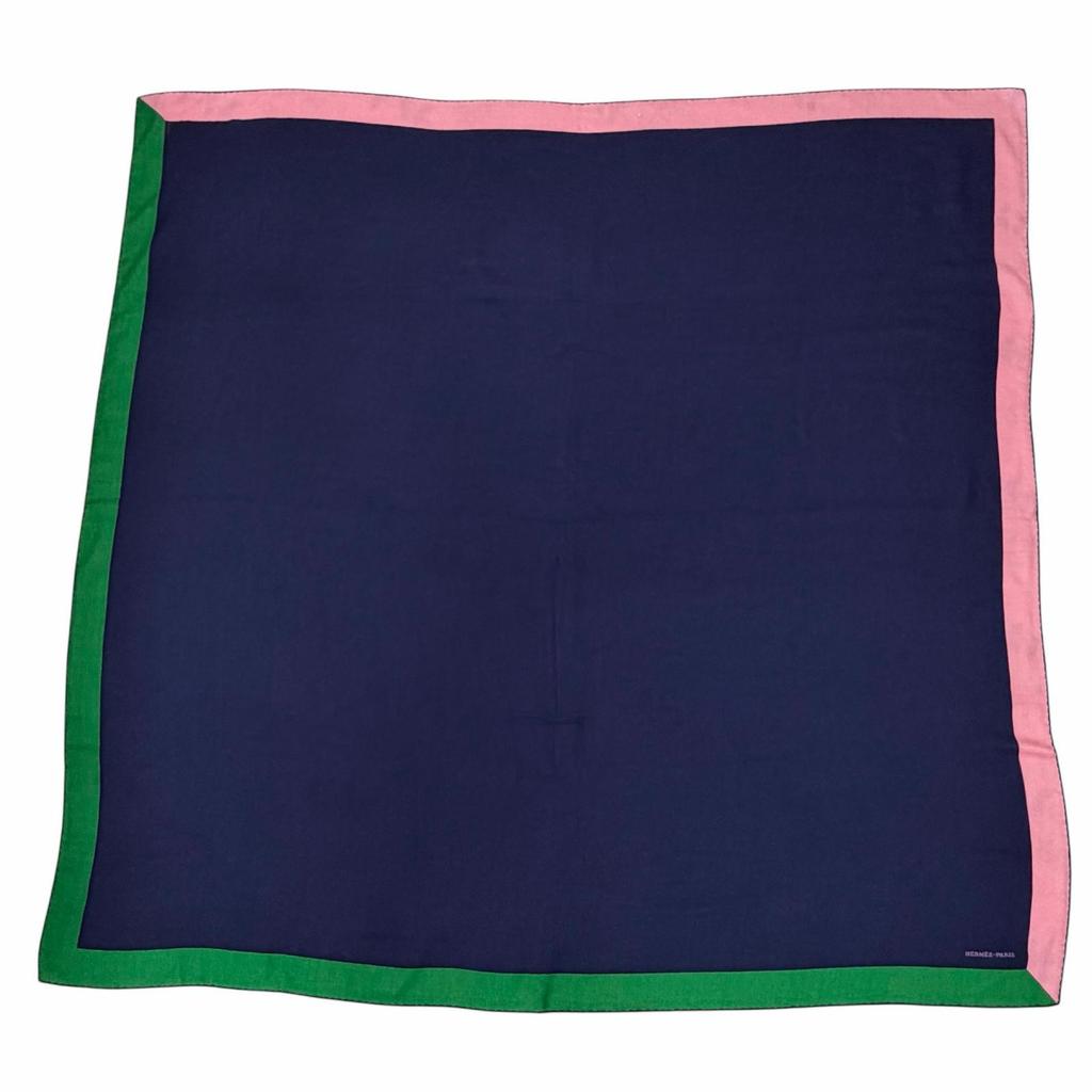 Excellent HERMES scarf GEANT ENCADRE Dark navy cashmere Women Used