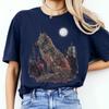 Maanlicht Mystieke Wolf Print T-shirt Vintage Dark Academia Fantasy Y2K Unisex Shirt Casual Korte Mouw Katoenen T-shirt Streetwear