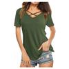 Women's Fashion Casual Color Blouse Cross Front V-Neck Short Sleeve Top