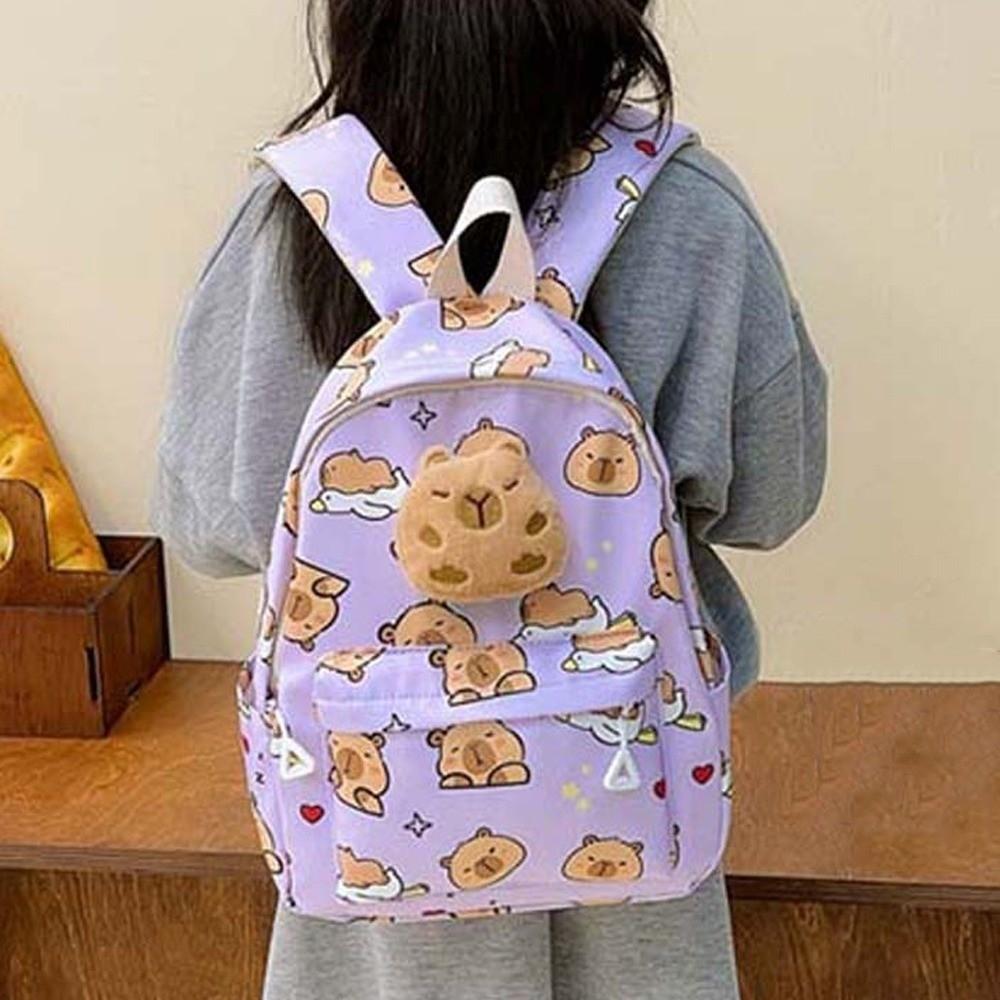 Doll Decoration Cartoon Animal Daypack Nylon Large Capacity School Bag Capybara Backpack Students