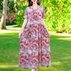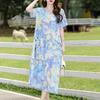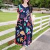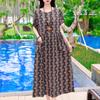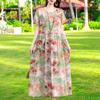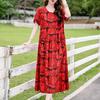 Vintage Print Lange Jurken voor Vrouwen Plus Size Korte Mouw Casual Zomerjurk Elegante Middelbare Leeftijd Dameskleding