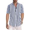 Summer Men's Casual Striped Lapel Short Sleeved Shirt
