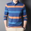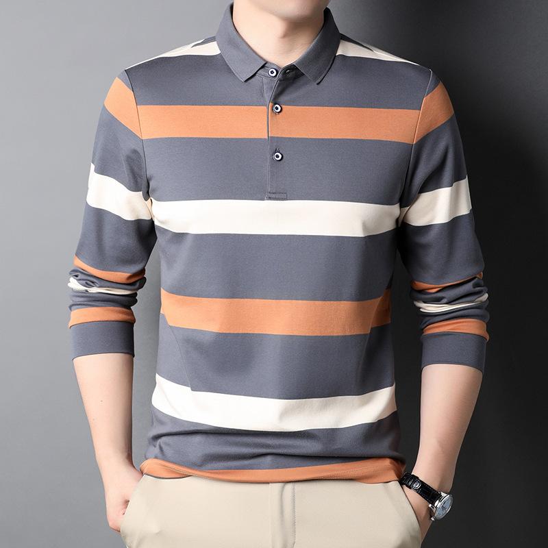 Lente Nieuwe Mode Casual Jong en Middelbare Leeftijd Heren Gestreept Dunne Revers Poloshirt T-shirt met Lange Mouwen