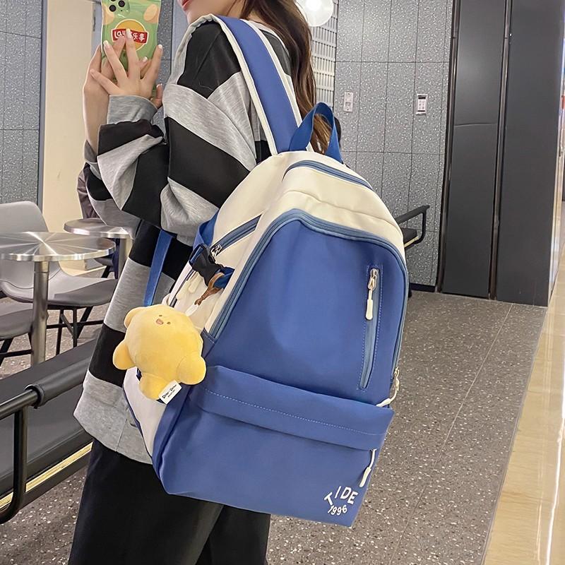 College style ins color matching letter student schoolbag Korean version large-capacity simple backpack
