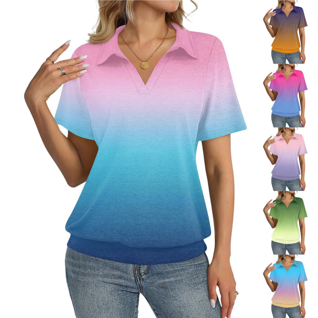 Damesmode Casual Revers Korte Mouw Bedrukt Shirt Dames Up Tops