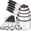 10-Piece Stainless Steel Measuring Cups and Spoons Set for Coffee, Seasoning, and Baking.