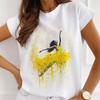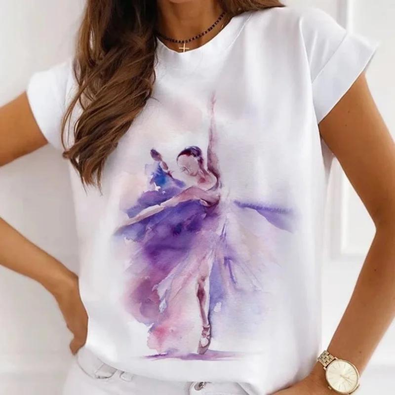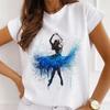 Stylish African Womens Watercolor Ballerina Girl Cute Cartoon Short Sleeve Tshirt Summer Tops Vintage Clothes Oversized Tee