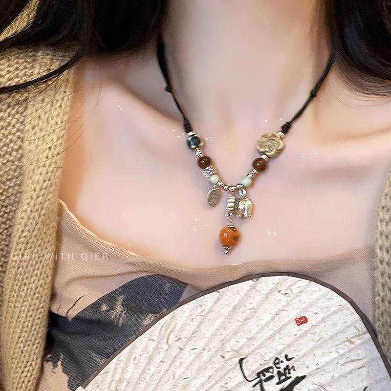 Misty Rain Kralen~ Nationale Stijl Kralenketting Dames Zomer Zen Stijl Lichte Luxe Premium Sleutelbeenketting Accessoires