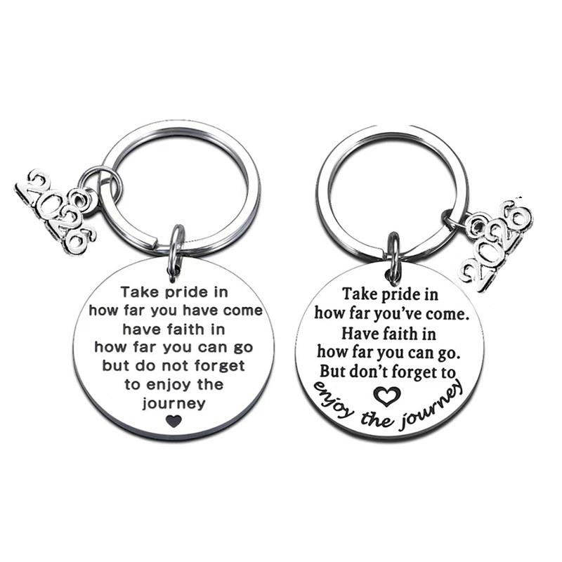 Sleutelhanger met afstudeerwens, gemaakt van roestvrij staal met lasergegraveerd ontwerp, modieuze tashanger, praktisch cadeau voor de afstudeerperiode.